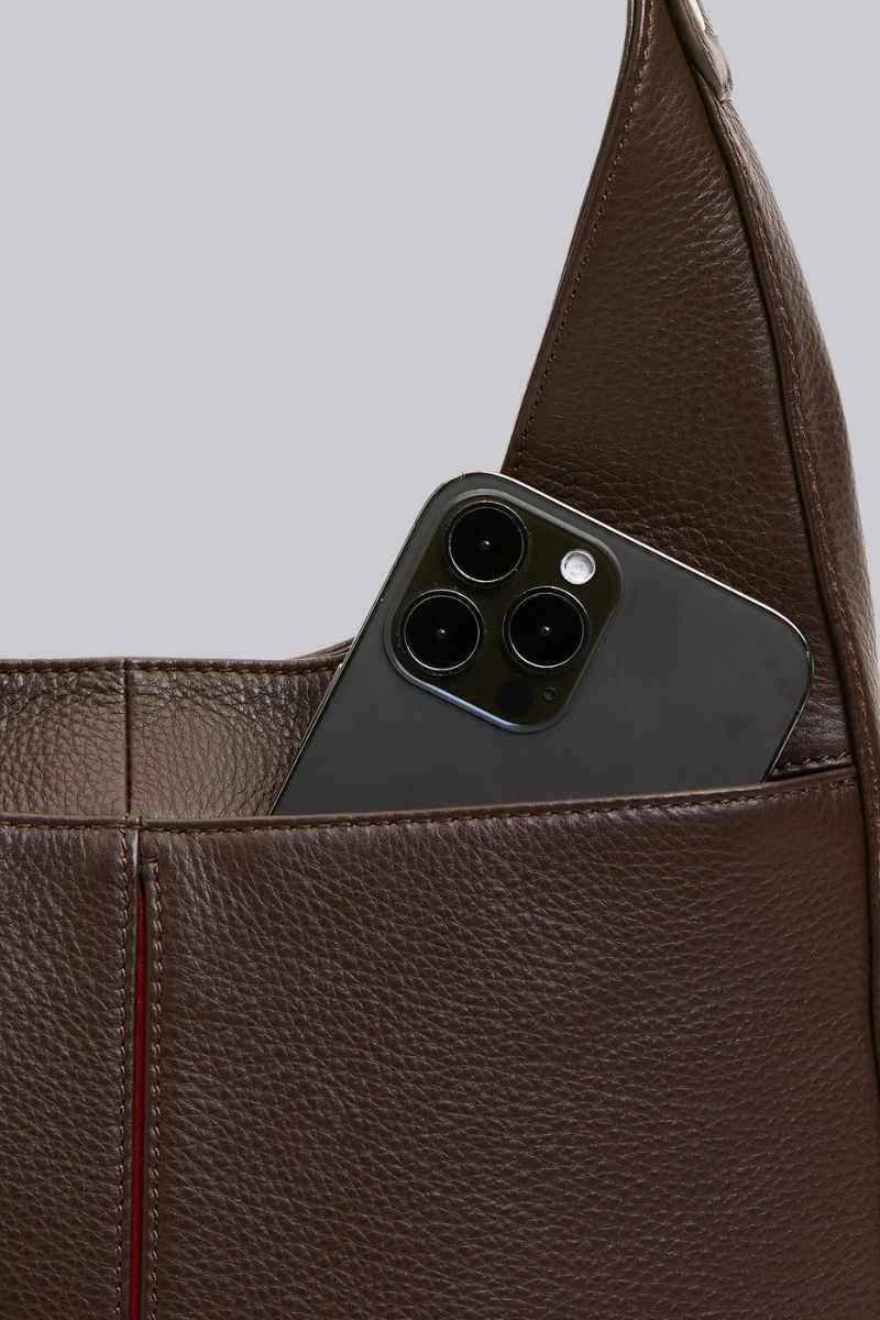 - Crafted with a classic dark espresso brown pebble leather
